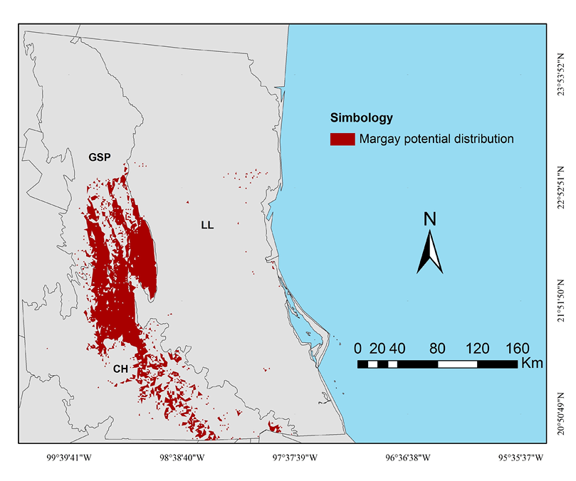 Potential distribution of margay (Leopardus wiedii, Schinz 1821) in Northeastern Mexico
