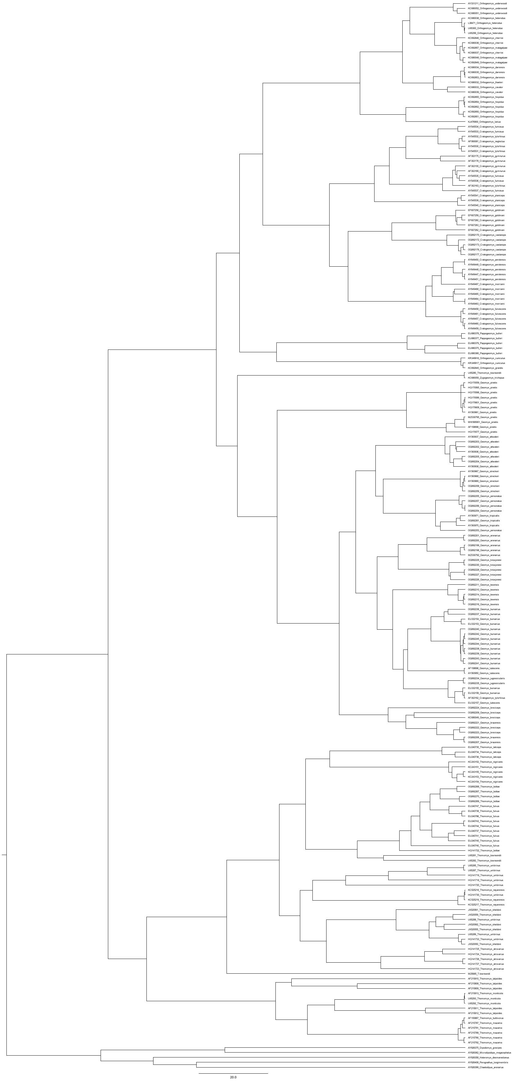 Pocket gophers (Geomyidae) comprise a well-studied family at the species level but need an updated revision at the generic level because studies of each genus have applied different data sets and different criteria for recognizing distinct taxa.  Pocket gophers thrive from temperate Canada south to Panama and Colombia, where they inhabit various habitats, including temperate forests, prairies, steppes, hot and cold deserts, and subtropical and tropical areas.  The taxonomy at the genus and species levels underwent many changes in the early twenty-first century due to use of different sequencing methodologies.  This article builds upon those analyses to review genus-level relationships within the Geomydae.  Specifically, we analyzed the sequences available in Genbank for members of the family Geomyidae (Cytb for 47 species and COI for 33 species).  We conducted different phylogenetic analyses; in all cases, genera were classified into monophyletic groups associated with the tribes Geomyini and Thomomyini.  In the Thomomyini, the genus Thomomys was recognized with two genera, Megascapheus and Thomomys, which are more genetically distinct than many other genera.  In the Geomyini, each genus and subgenus are distinct monophyletic groups with very strong support and large p-distances.  The Mississippi River appears to function as an important geographic barrier within Geomys, with marked genetic differentiation between populations on the eastern and western sides of the river.  Collectively, our analyses based on mtDNA sequences suggest that a more detailed revision employing multiple data sets is needed for the genera within the Geomyidae.